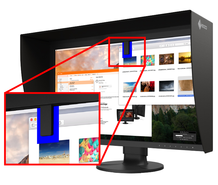 ColorEdge were the first monitors in the world to have a built-in calibration sensor for color critical applications. The ColorEdge CG2700X’s built-in sensor can be set to calibrate the monitor automatically at designated times. This eliminates the need for a third-party calibration device and ensures your screen stays color-accurate. In addition, the sensor swings onto the screen, taking up minimal space and allowing you to continue working even during calibration.